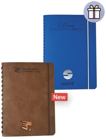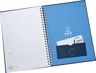 À la fois pratique et valorisant pour votre image de marque, ce support constitue la solution idéale pour la prise de notes lors de réunions, de formations ou dans le cadre de votre activité quotidienne au bureau. Conçu pour allier fonctionnalité et élégance, il peut être réalisé avec une reliure d’art cousue-collée pour un rendu haut de gamme ou avec une reliure spirale offrant une manipulation simple et confortable.